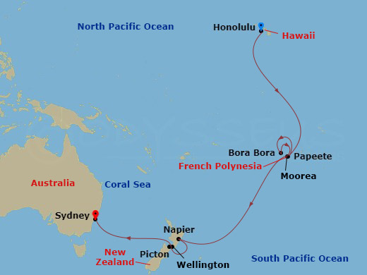 • 19 night cruise from Honolulu to Sydney aboard Ovation of the Seas